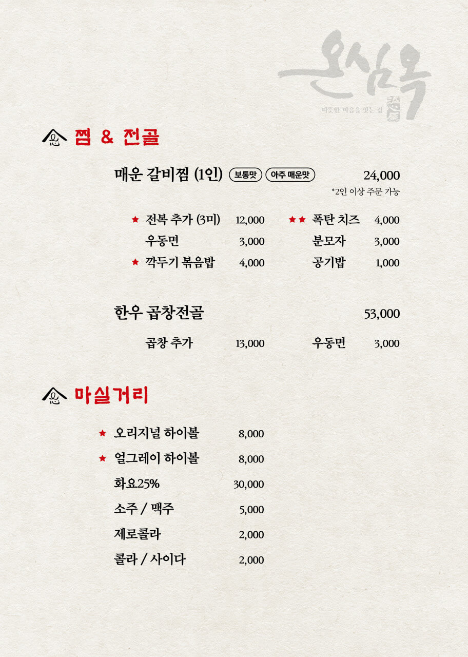 ✅ 주요 메뉴 및 가격 정보