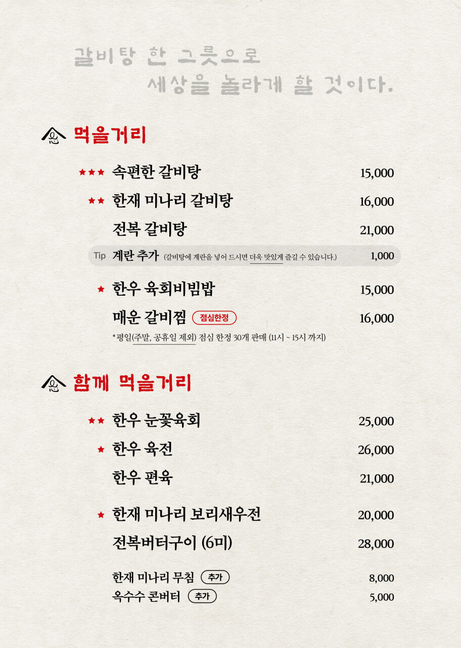 - 한재 미나리 갈비탕 - 16,000