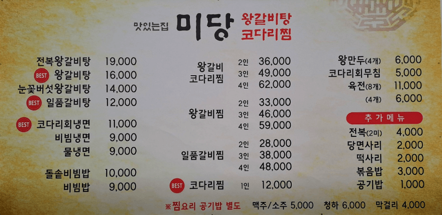오늘 한끼에 얼마에요 코너에 소개된 왕갈비탕 맛집은 서울 중랑구에 있는 '미당'이라는 식당입니다.